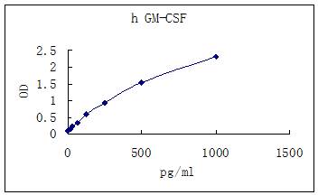 This assay employs the quantitative sandwich enzyme immunoassay technique. A monoclonal antibody specific for GM-CSF has been pre-coated onto a microplate. Standards and samples are pipetted into the wells and any GM-CSF present is bound by the immobilized antibody. Following incubation unbound samples are removed during a wash step, and then a detection antibody specific for GM-CSF is added to the wells and binds to the combination of capture antibody- GM-CSF in sample. Following a wash to remove any unbound combination, and enzyme conjugate is added to the wells. Following incubation and wash steps a substrate is added. A coloured product is formed in proportion to the amount of GM-CSF present in the sample. The reaction is terminated by addition of acid and absorbance is measured at 450nm. A standard curve is prepared from seven GM-CSF standard dilutions and GM-CSF sample concentration determined.