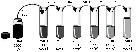 This assay employs the quantitative sandwich enzyme immunoassay technique. A monoclonal antibody specific for TNF-α has been pre-coated onto a microplate. Standard, control, or sample and the working solution of Biotin-Conjugate are pipetted into the wells. Following incubation and wash steps,any TNF-α present is bound by the immobilized antibody and the detection antibody specific for TNF-α is binds to the combination of capture antibody- TNF-α in sample. Following a wash to remove any unbound combination, and enzyme conjugate is added to the wells. Following incubation and wash steps a substrate is added. A coloured product is formed in proportion to the amount of TNF-α present in the sample. The reaction is terminated by addition of acid and absorbance is measured at 450nm. A standard curve is prepared from seven TNF-α standard dilutions and TNF-α sample concentration determined.