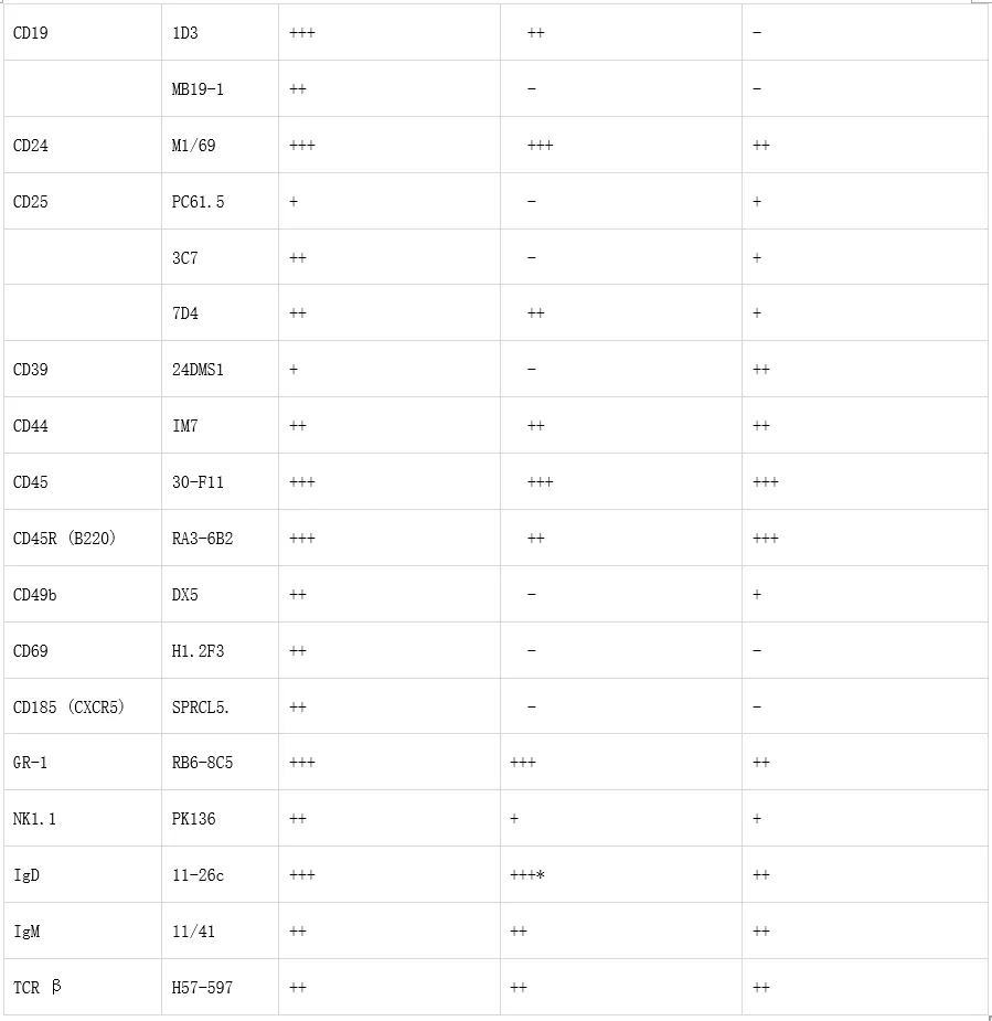 以 CD16(FcγRIII)抗体为例,3G8 克隆号与 Fc 受体结合后,可同时检测 NK 细胞和粒细胞;而 MEM-154 抗体则不与 NK 细胞上的 CD16a 反应,但能与 CD16 阳性粒细胞反应。