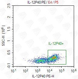 IL-12 is a disulfide-linked, 70 kDa (p70) heterodimeric glycoprotein composed of a 40 kDA (p40) subunit and a 35 kDa (p35) subunit.the p40 subunit shared by interleukins 12 and 23.IL-12 is produced by dendritic cells, macrophages, neutrophils, and human B-lymphoblastoid cells. It has multiple effects on T-cells and NK cells, including stimulation of cytotoxic activity, proliferation, and promotion of Th1 development as well as IFN-gamma and TNF productio. IL-23 is mainly secreted by activated dendritic cells, macrophages or monocytes.IL-23 is suspected to play a role in tumorigenesis.